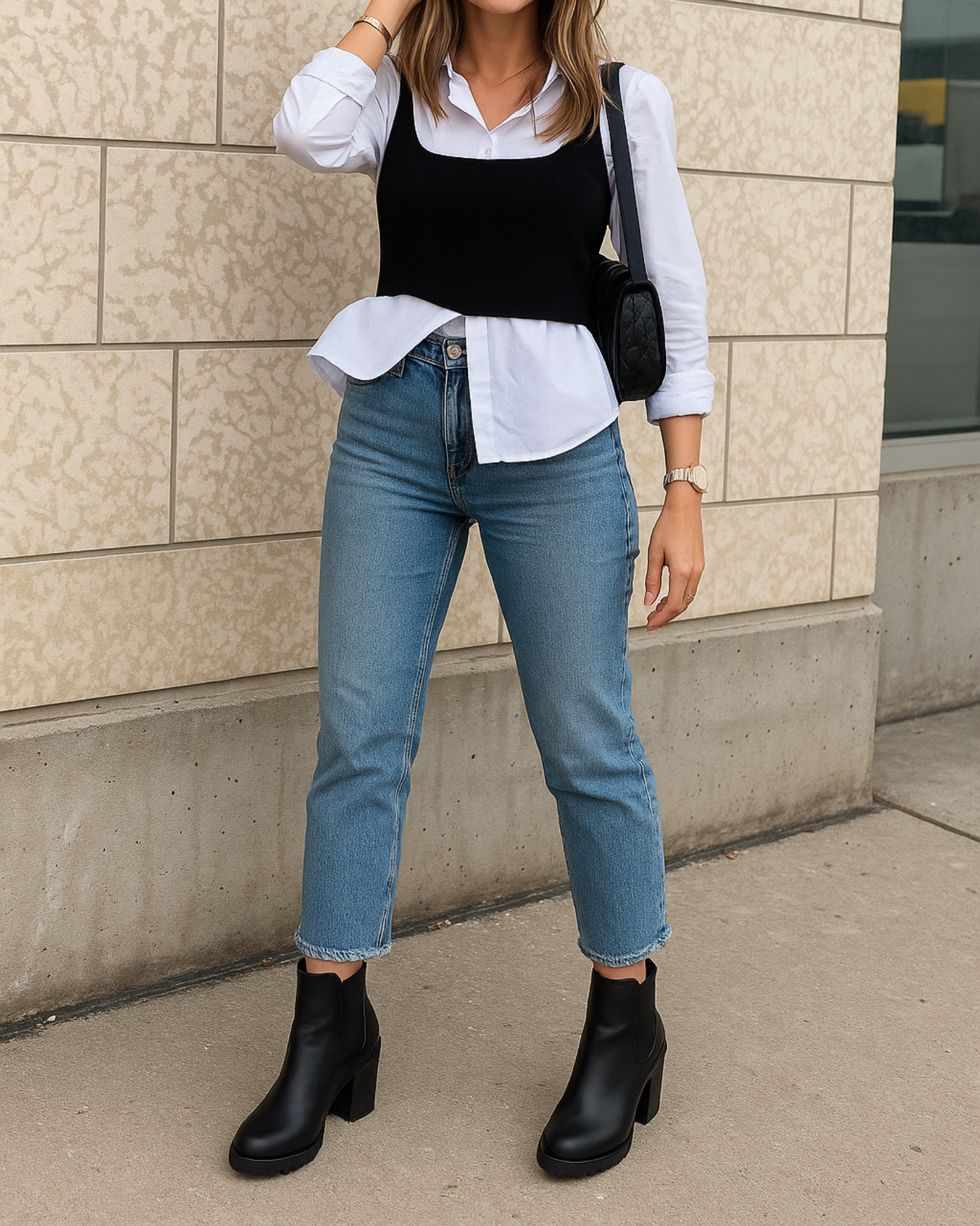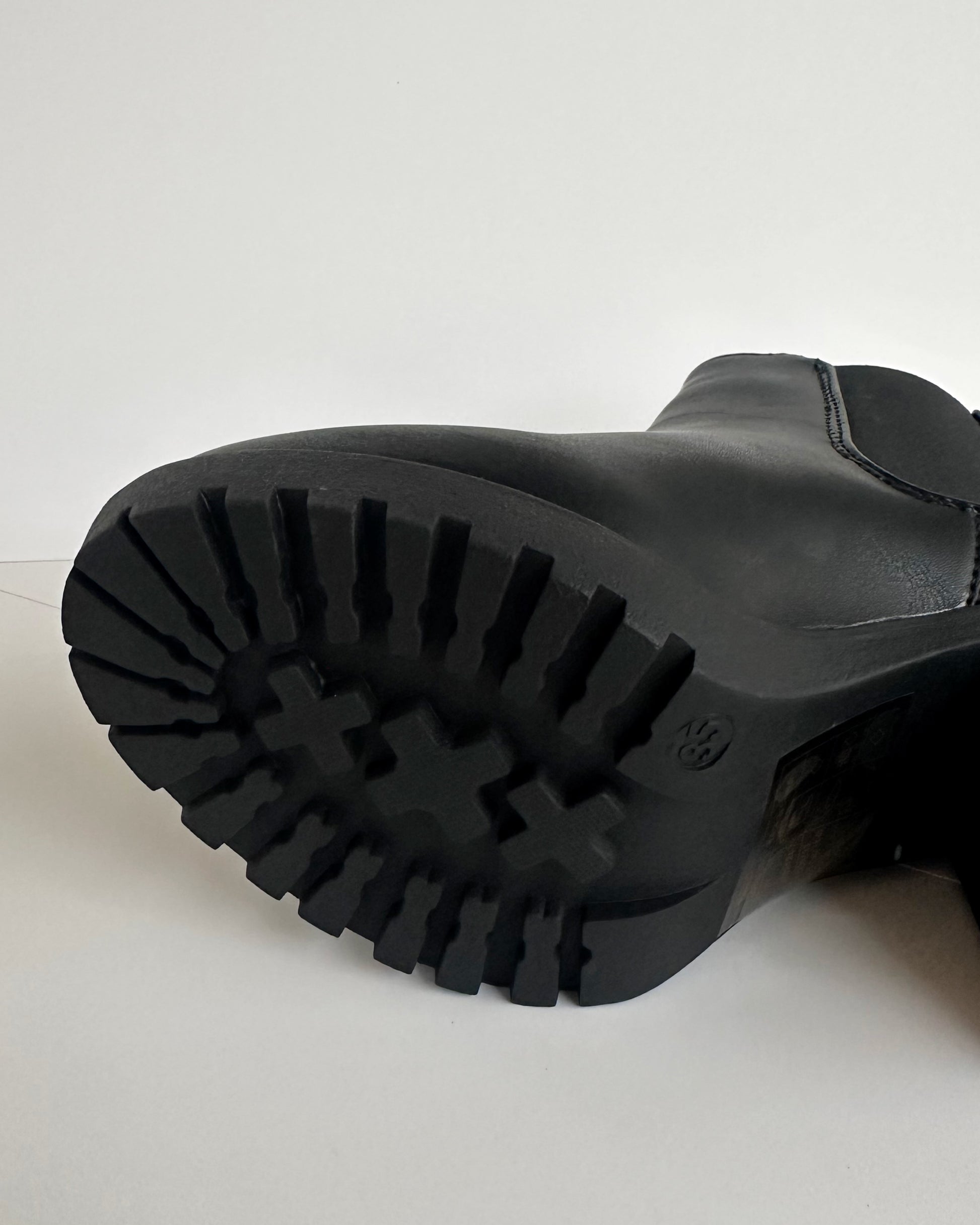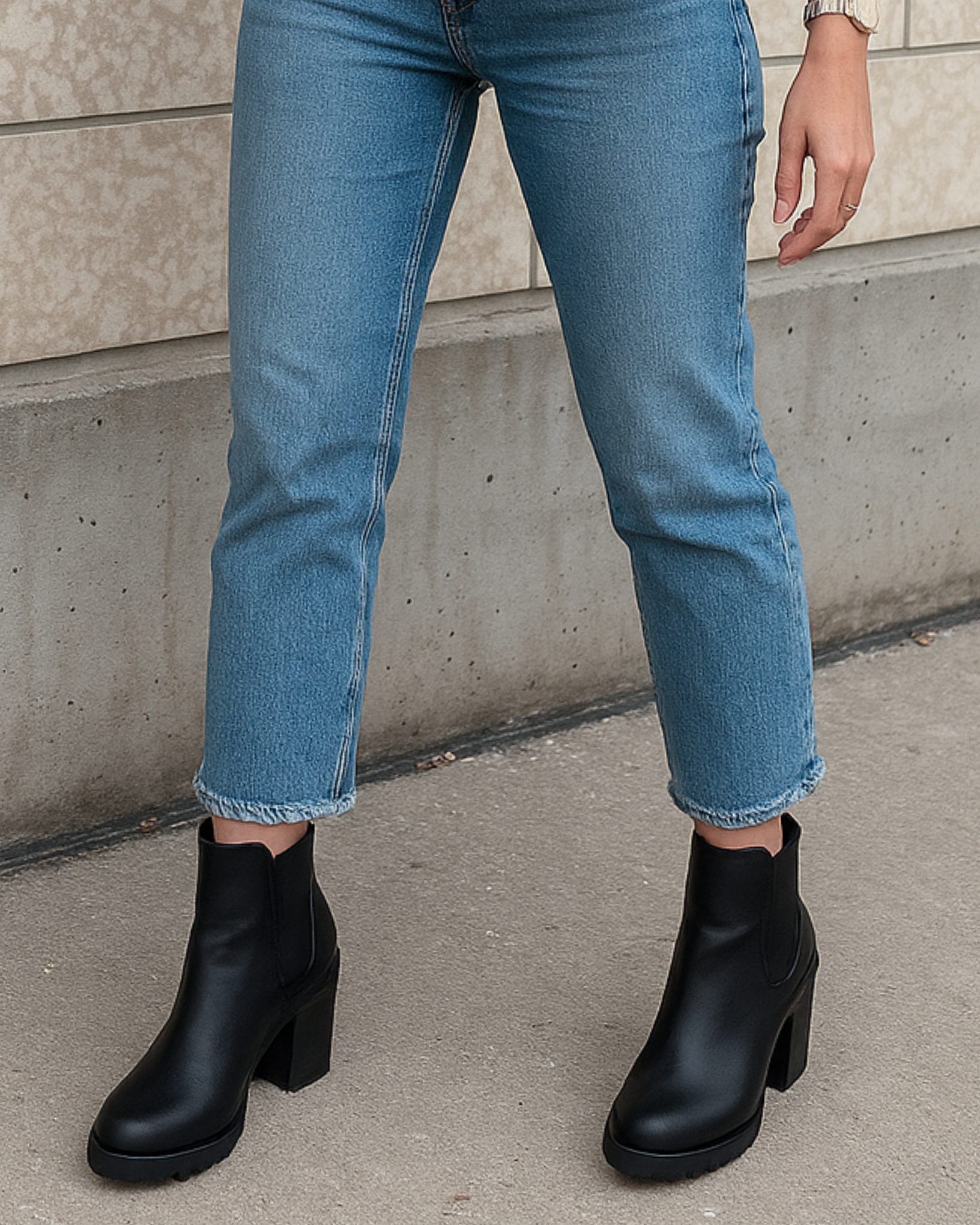 Botines negros de 8 cm de alto con hebilla y zipper.