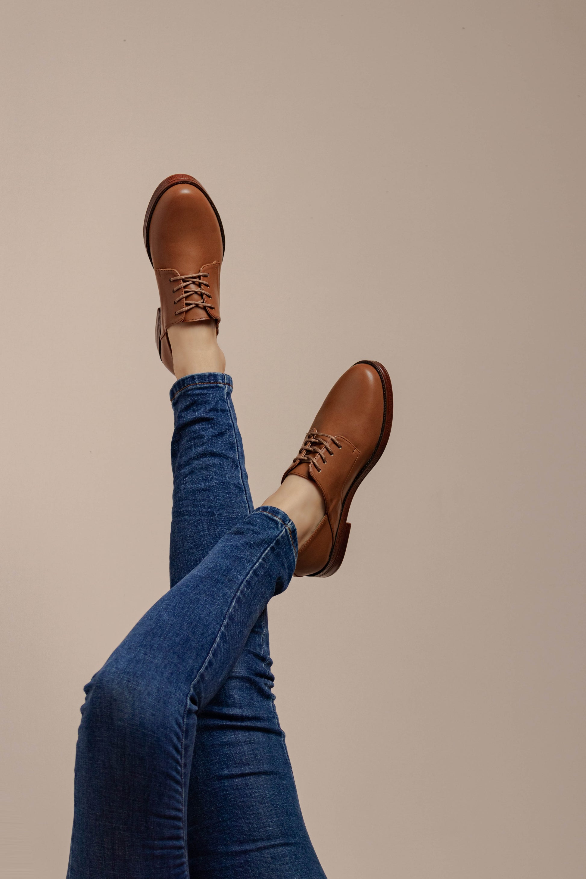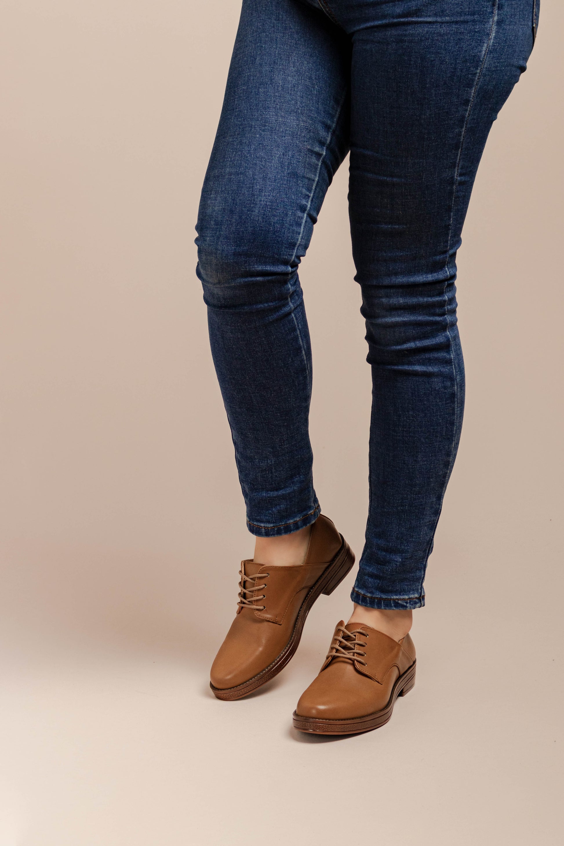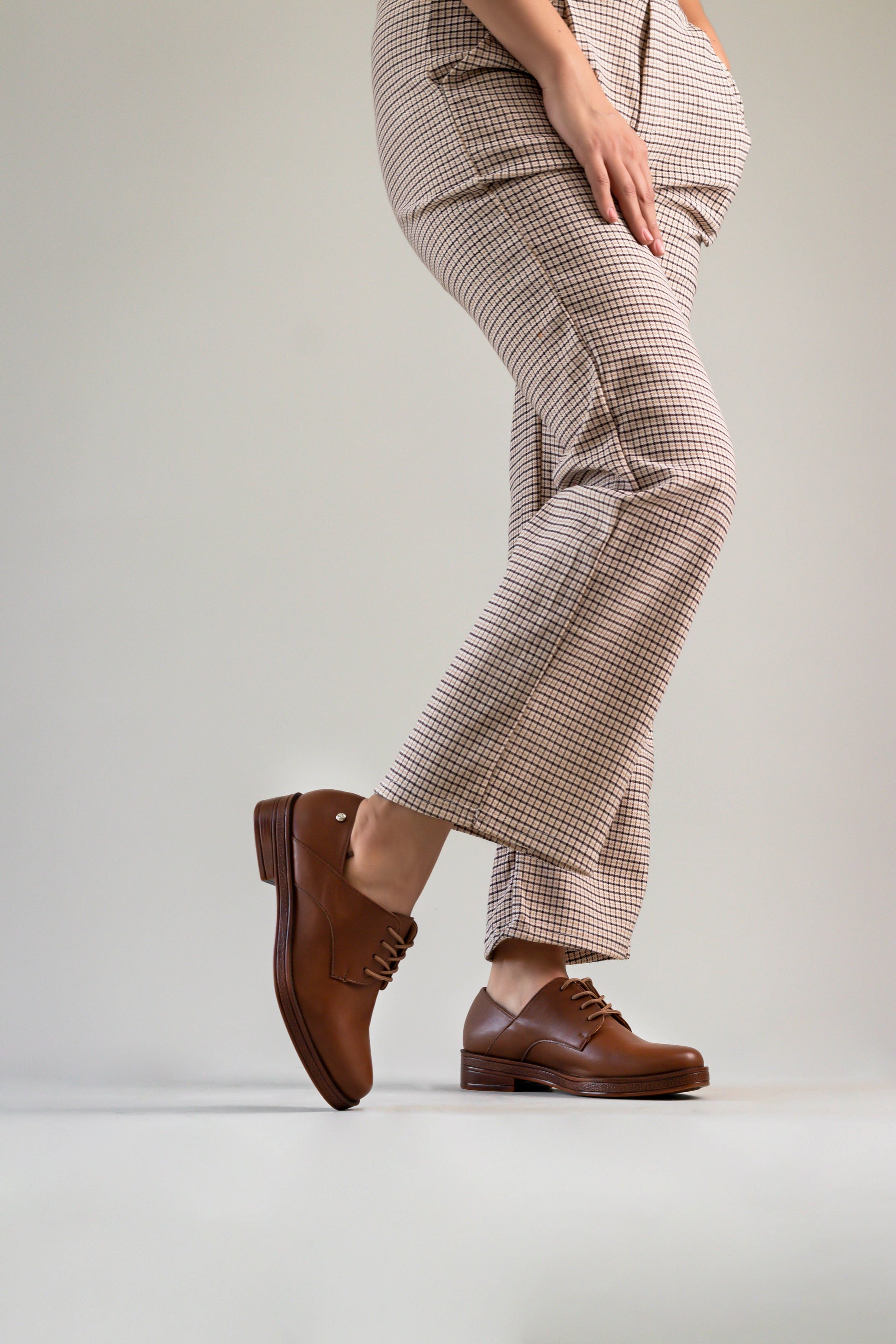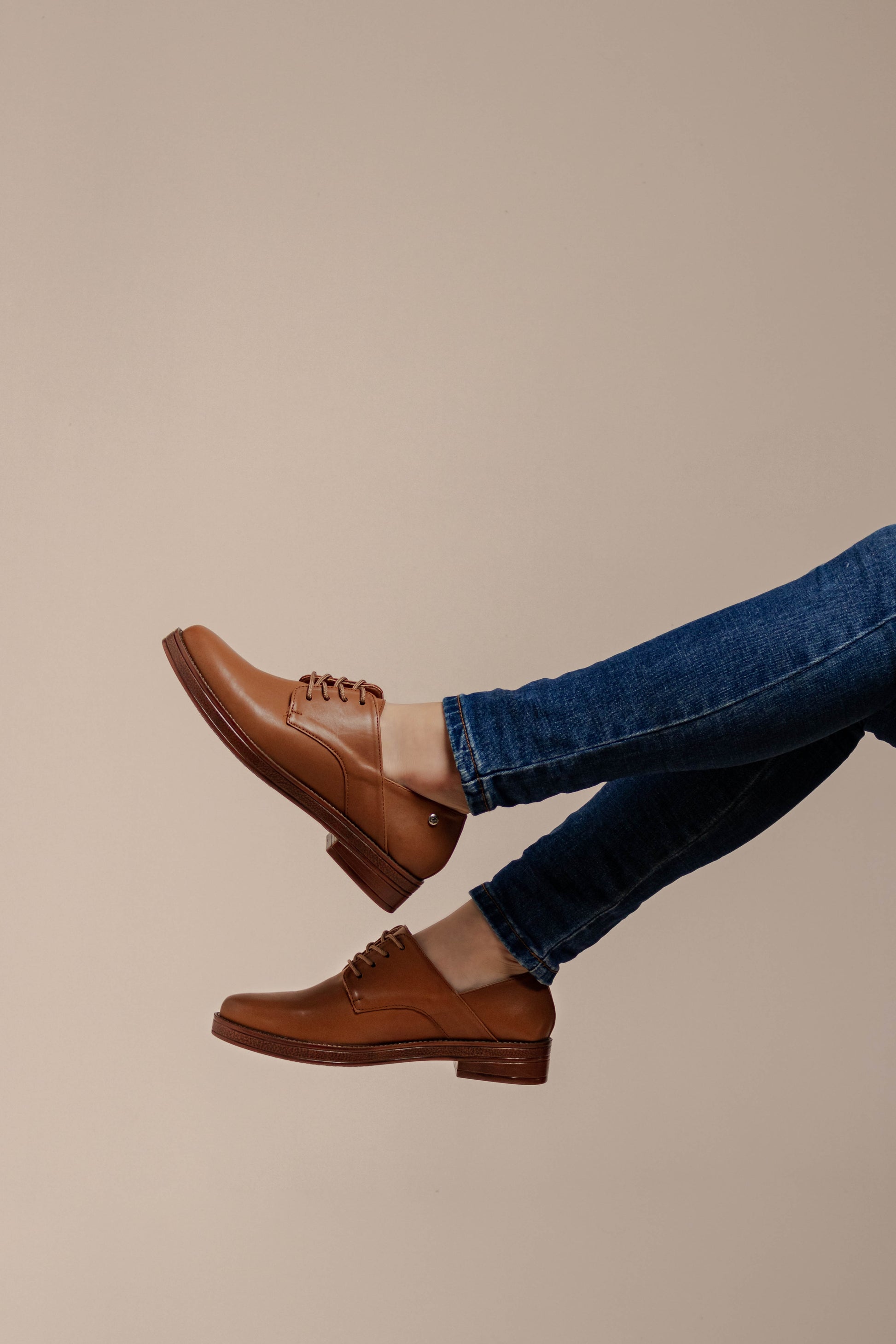 Bostonianos camel con detalle de textura y cintas de amarrar.