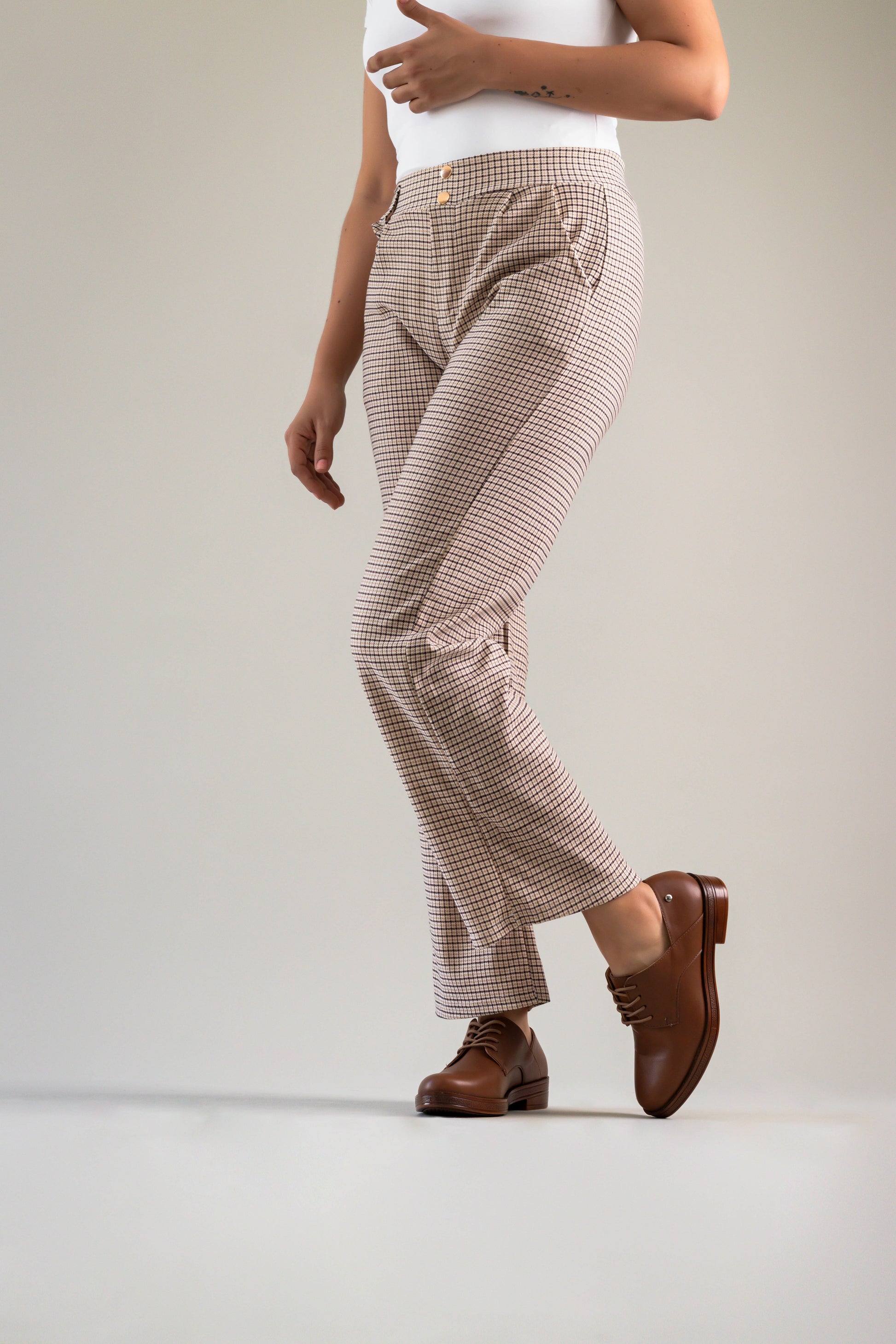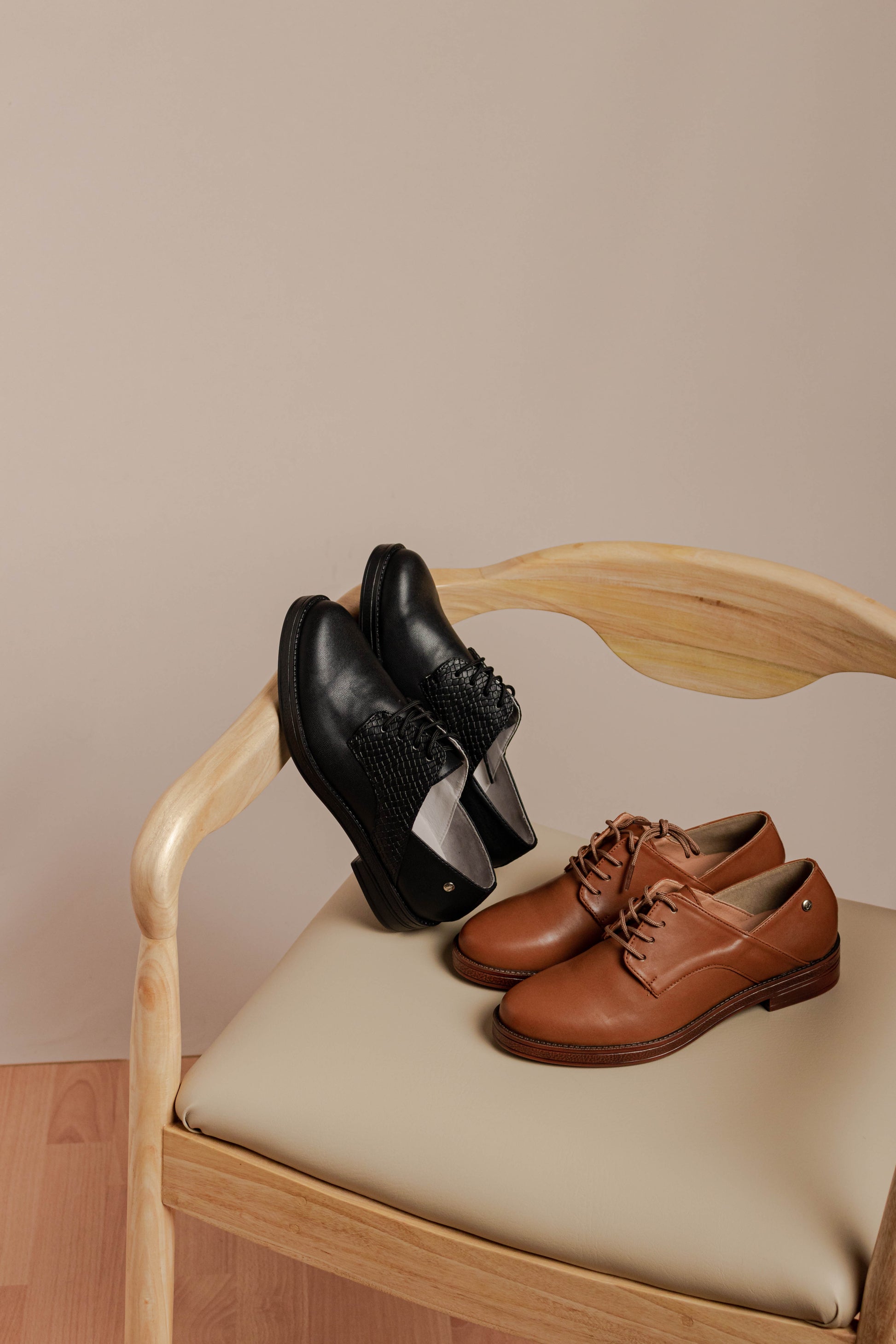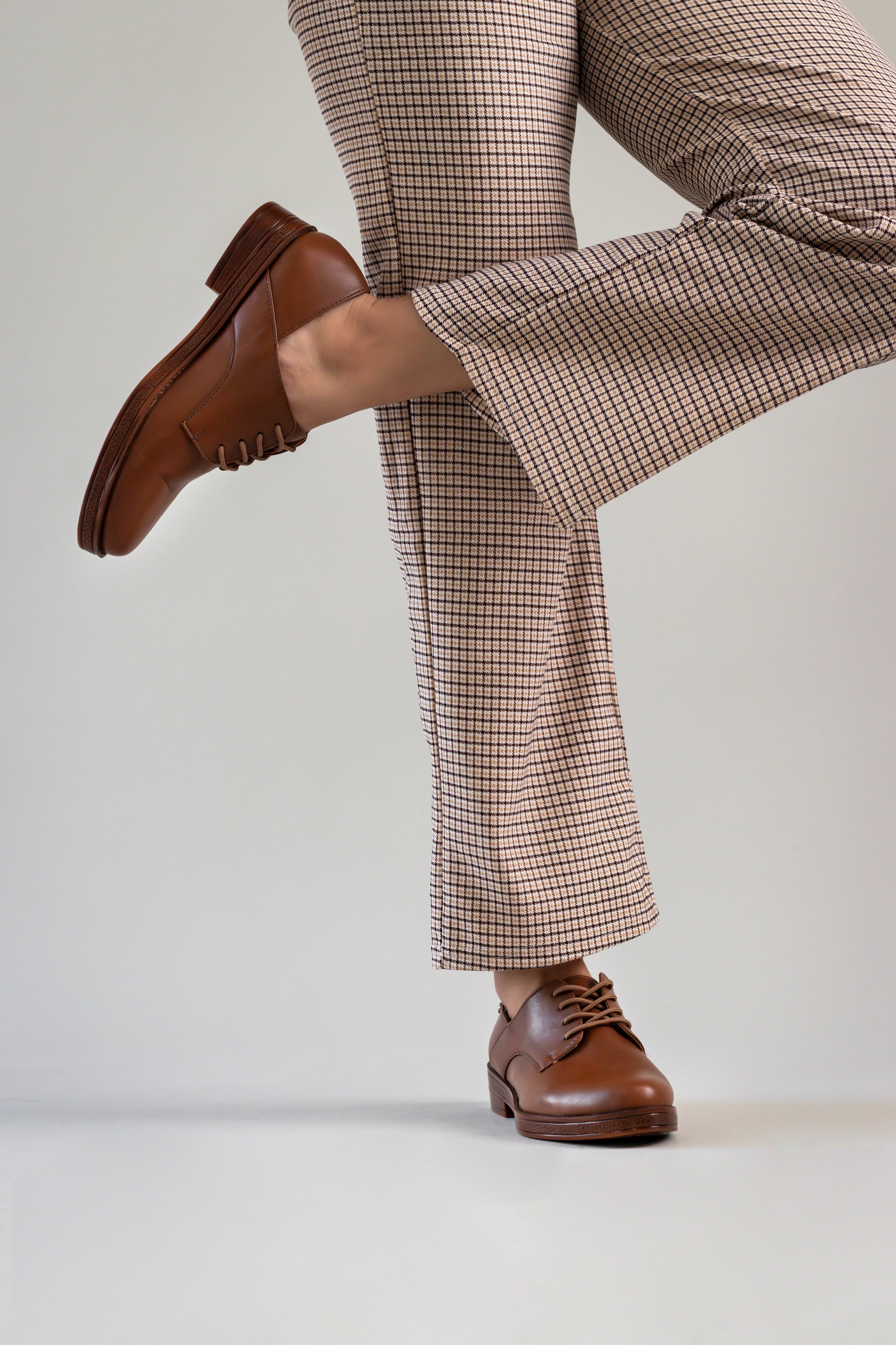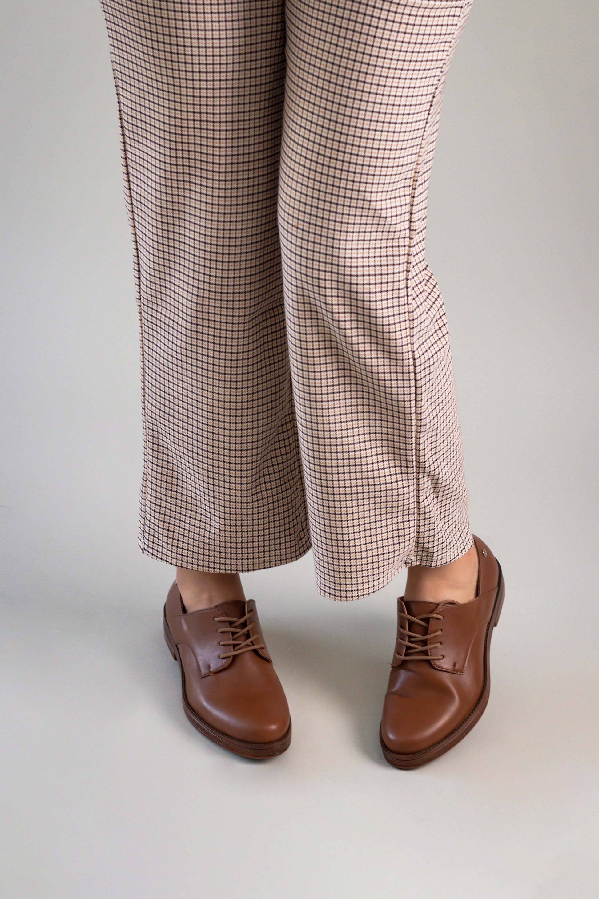 Bostonianos camel con detalle de textura y cintas de amarrar.