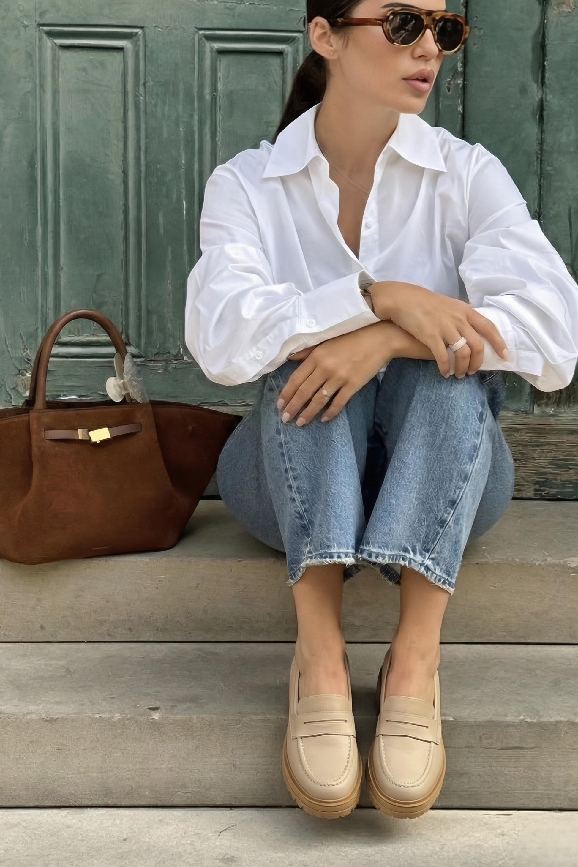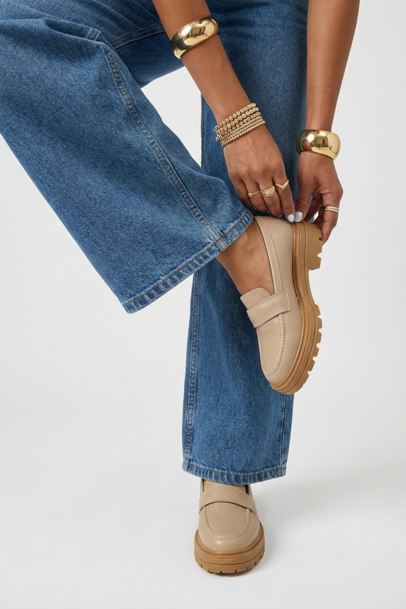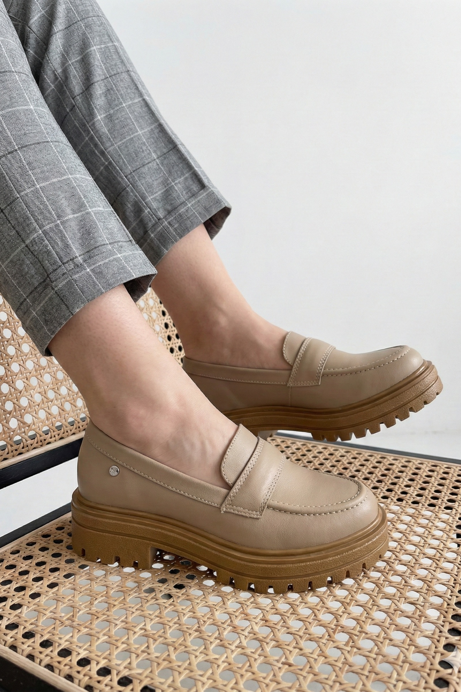 Mocasines casuales color beige. Plataforma de 4.5 centímetros de alto atrás y 3.5 adelante ¡Súper cómodos!